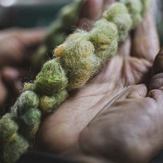 羊毛の洗浄にも、純粋な水と無化学石鹸を使用しています。昔ながらのサステナブルでシンプルでピュアな温かみのある製品づくりは、意外にも流行から取り残されることなく、モダンなインテリアに美しいアクセントを加えるアイテムとして、新たな脚光を浴びています。
