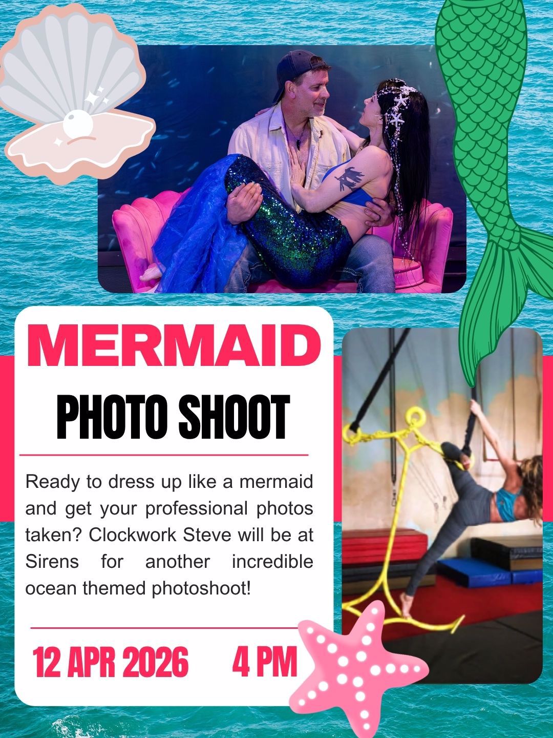 - April 12th: Mermaid Photoshoot with Clockwork Steve