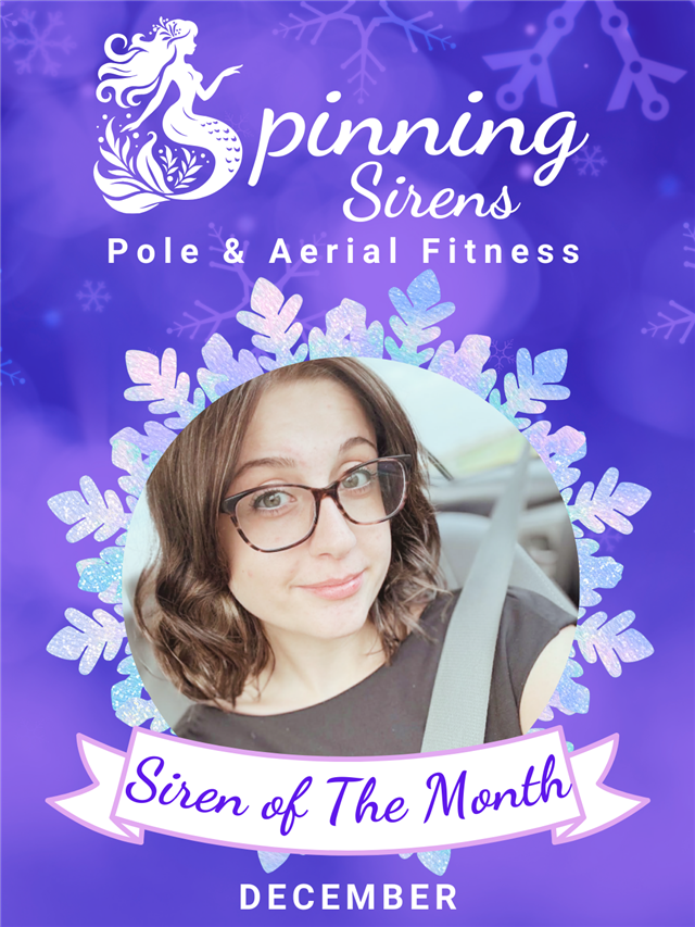 If you’ve ever shared a room with Courtney, you already know she brings the kind of delightful chaos that makes class way more fun. She began her pole journey back in September 2020 and immediately fell in love with the challenge, the beauty, and—of course—the community. Lucky for us, she brought all of that energy straight into Spinning Sirens.