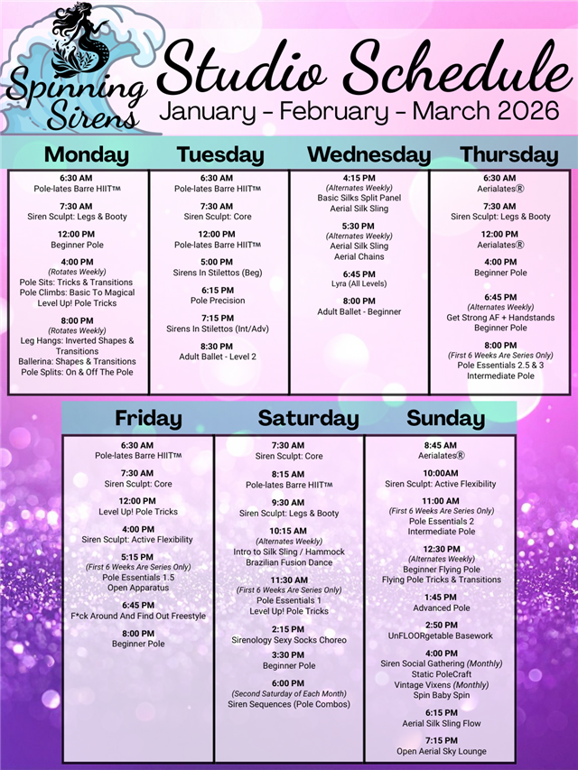 Most of you are brand new to pole and aerial, and that makes my 💖so happy. This may be the very first studio you’ve ever trained in, so I want to make sure you feel supported, safe, and confident every time you walk through our doors. None of this is meant to call anyone out—this is simply me, your resident Studio Mom, making sure our space stays welcoming, kind, and magical for everyone. Here’s how we keep things running smoothly: