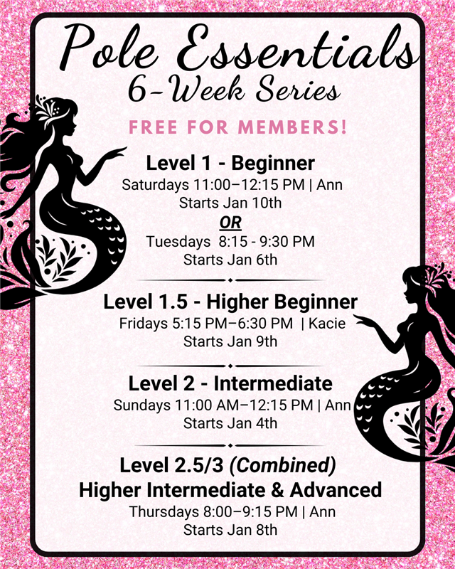 Our Pole Essentials Series is back for another 6-week runâFREE for Spinning Sirens members, or just $69 for Level 1 ($125 for all other levels) for non-members ⨠This series is your roadmap to strength, confidence, clean tricks, and feeling like the magical menace you truly are.