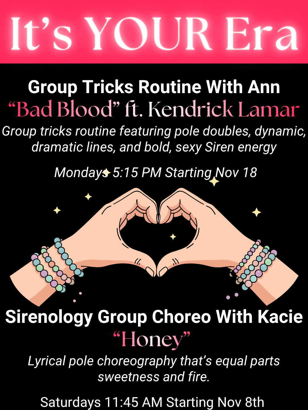 Yep, a Taylor Swift–themed night of pole & aerial performances where every song tells a story (with a little glitter and grip). ALL POLE LEVELS WELCOME, and yes, you may be in more than one act!!!!
