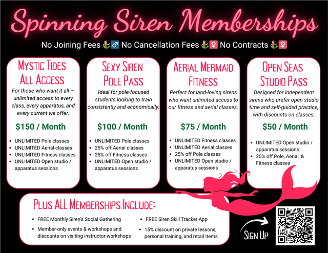 Spinning Sirens Pole & Aerial Fitness studio has officially rebooted its membership game! We’ve revamped our passes to give you maximum magic and minimum strings.