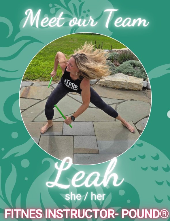 🥁 POUND® - Drumming Fitness with Leah Rockout. Workout! This class combines cardio, pilates, and choreography with constant simulated drumming – all to loud, kick-ass music. An energizing, infectious, sweat-dripping workout, each strike of the Ripstix releases the happy brain chemicals of mixing sound and movement in synchronized groups. POUND allows you to truly become the music! All Fitness Levels Welcome, No Experience Necessary. Recommended To Bring: Yoga Mat, Earplugs.