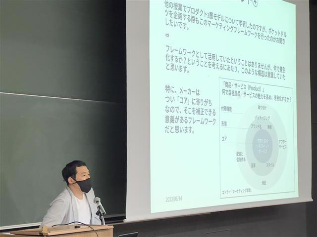 職能としての商品企画は、あくまでターゲットが欲しいと思うものを洞察し導出することがミッションです。ただし、自分が好きと思える企画であれば、仕様検討にもプレゼンにも当然熱が入るし、説得力も生まれてくるはず。このことは、事前には明確には伝えず、講義の行間で伝われば良いなと思ってきました。ただ、終了後に自分のプレゼンに満足できず悔しがっている学生の様子を見て、今後はもう少し伝わりやすく工夫をしたいと感じました。
