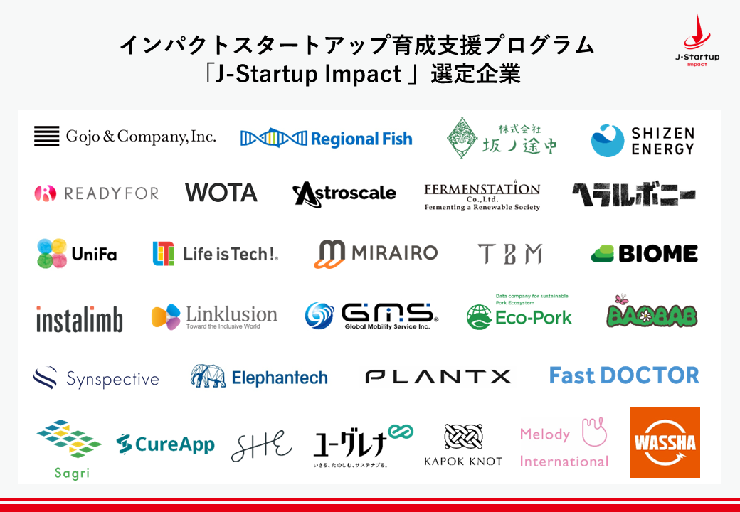 J-Startup Impactの選定企業公表資料には、選定された企業の経営者のメッセージや経営理念、選定企業が取り組む社会課題、具体的な事業や取り組み、さらに選定理由が紹介されています。これから成長を目指すインパクトスタートアップにとっては、自社のロールモデルを見つけたり、社会的インパクト創出のための道筋を描く上での参考とすることが期待されます。