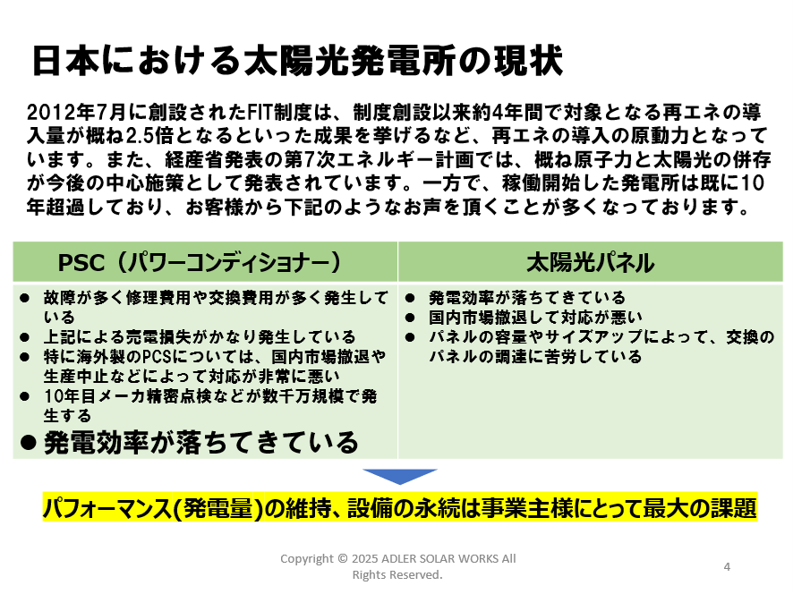 アドラーソーラーワークスでは、現在O&M事業だけでなく、このR&R事業に