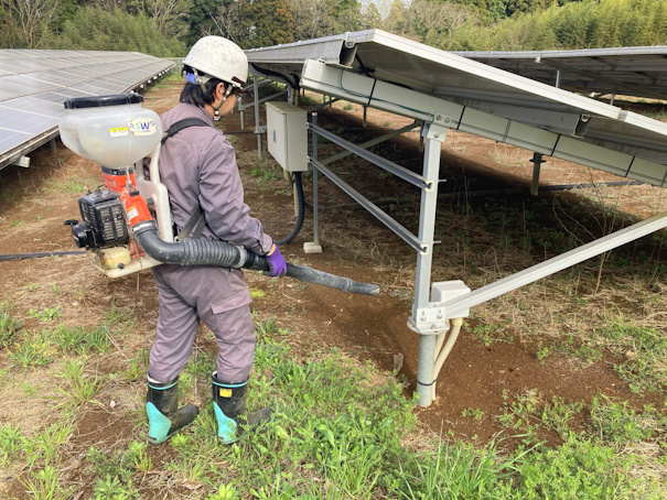 先月から今月にかけて、薬剤を撒いて生育を抑える作業を行い、初夏から夏場の生育時期対策に備えていました。